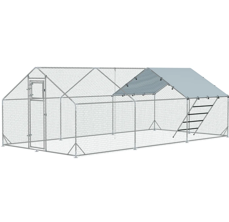 Metal Chicken Run W Waterproof & Anti-UV Cover, Feeding Door